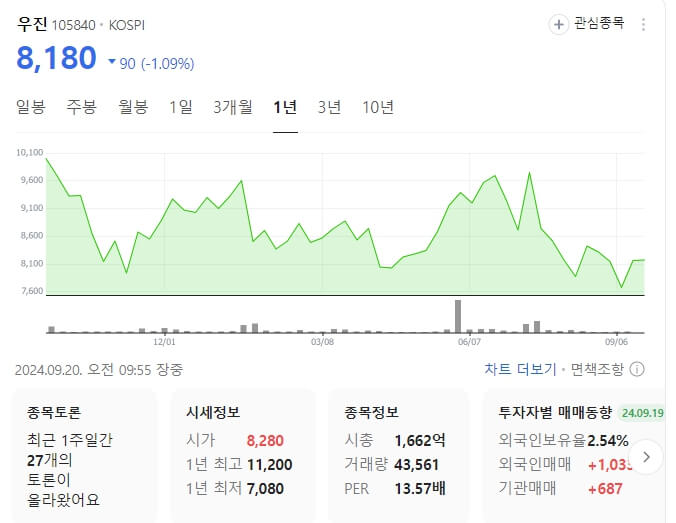 매출액 100억 이상 달성하고 있는 우진기업은 2015 설립되어 체코 원전 기대감으로 주가가 상승했던 적이 있습니다. 체코 원전에 계측기를 납품하며 미국까지 사업을 확장하고 있지만 중이지만 계측기 사업은 특별한 기술력이 필요하지 않기 때문에 언제든 대체 기업들이 나타날수 있습니다.